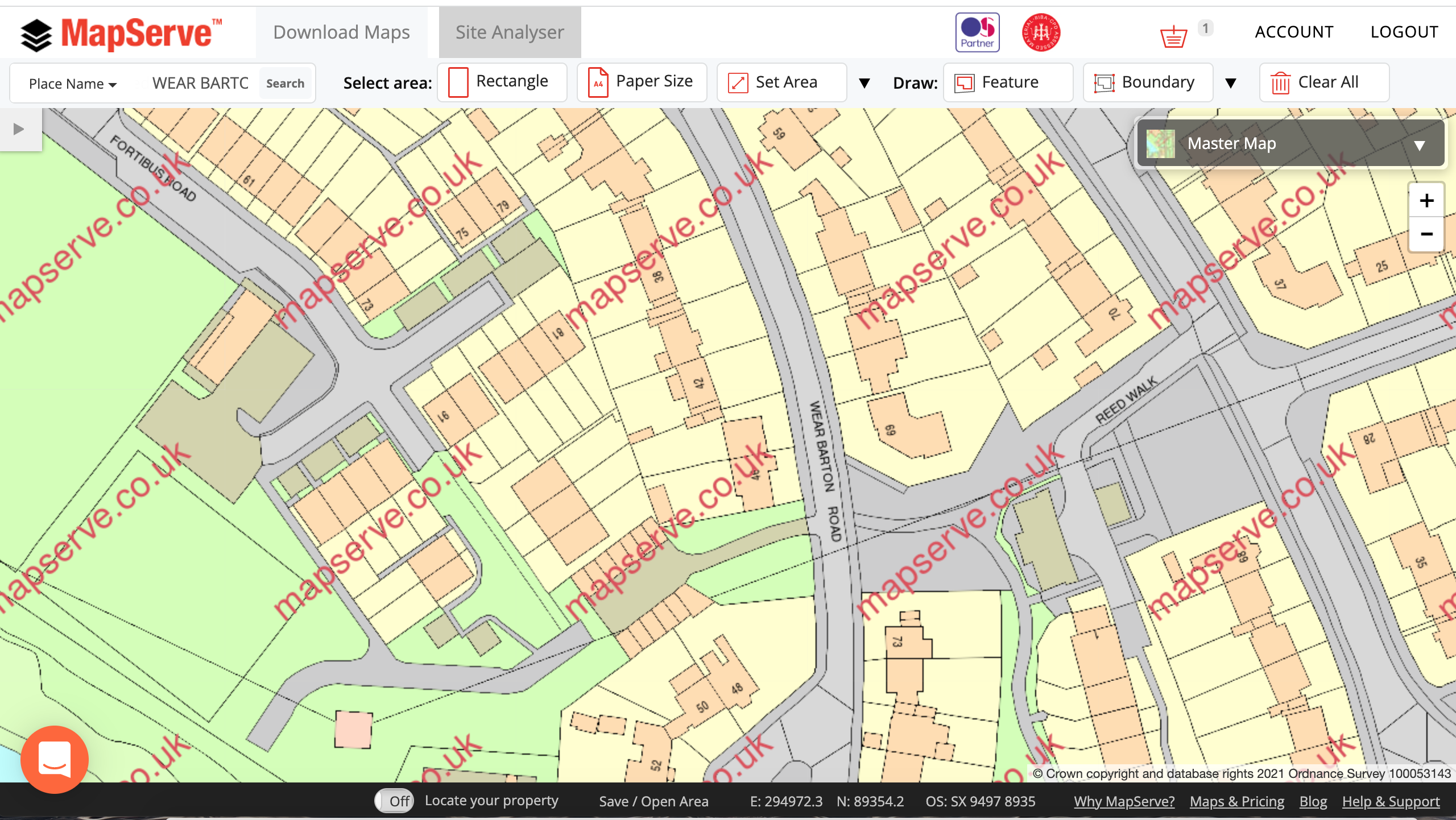 First you need to get a map of your property using a licensed and accredited provider. At MapServe we offer OS Mastermap which is the most up to date and detailed map of the UK. It is provided by the Ordnance Survey and it comes fully licensed to use in your site plan.